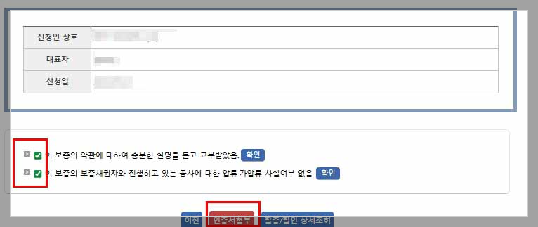 - 전 보증서 > 검색하여 해당 공사명 클릭