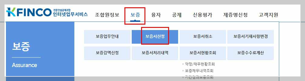 - 전문건설공제조합 로그인 > 보증 > 보증서 신청